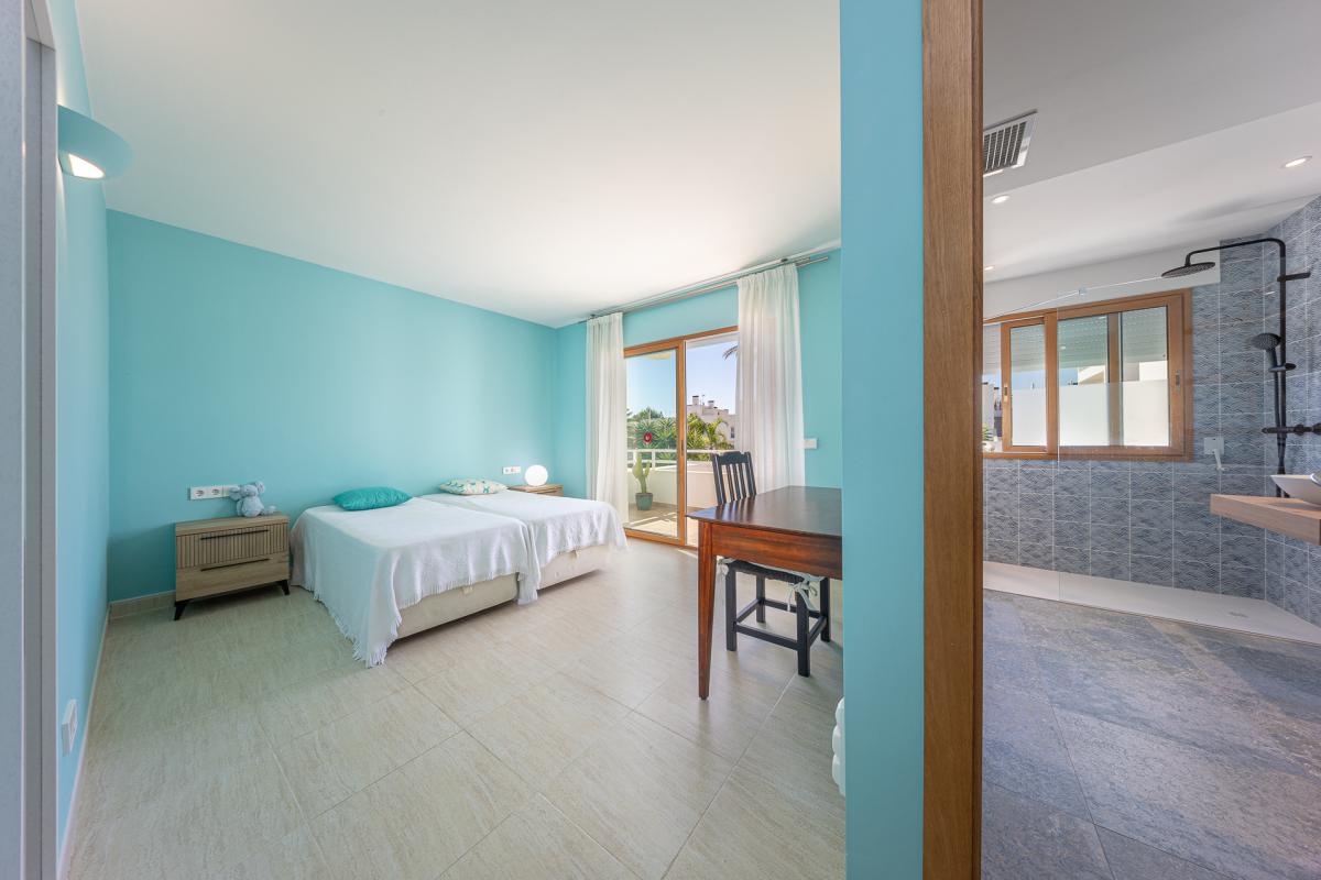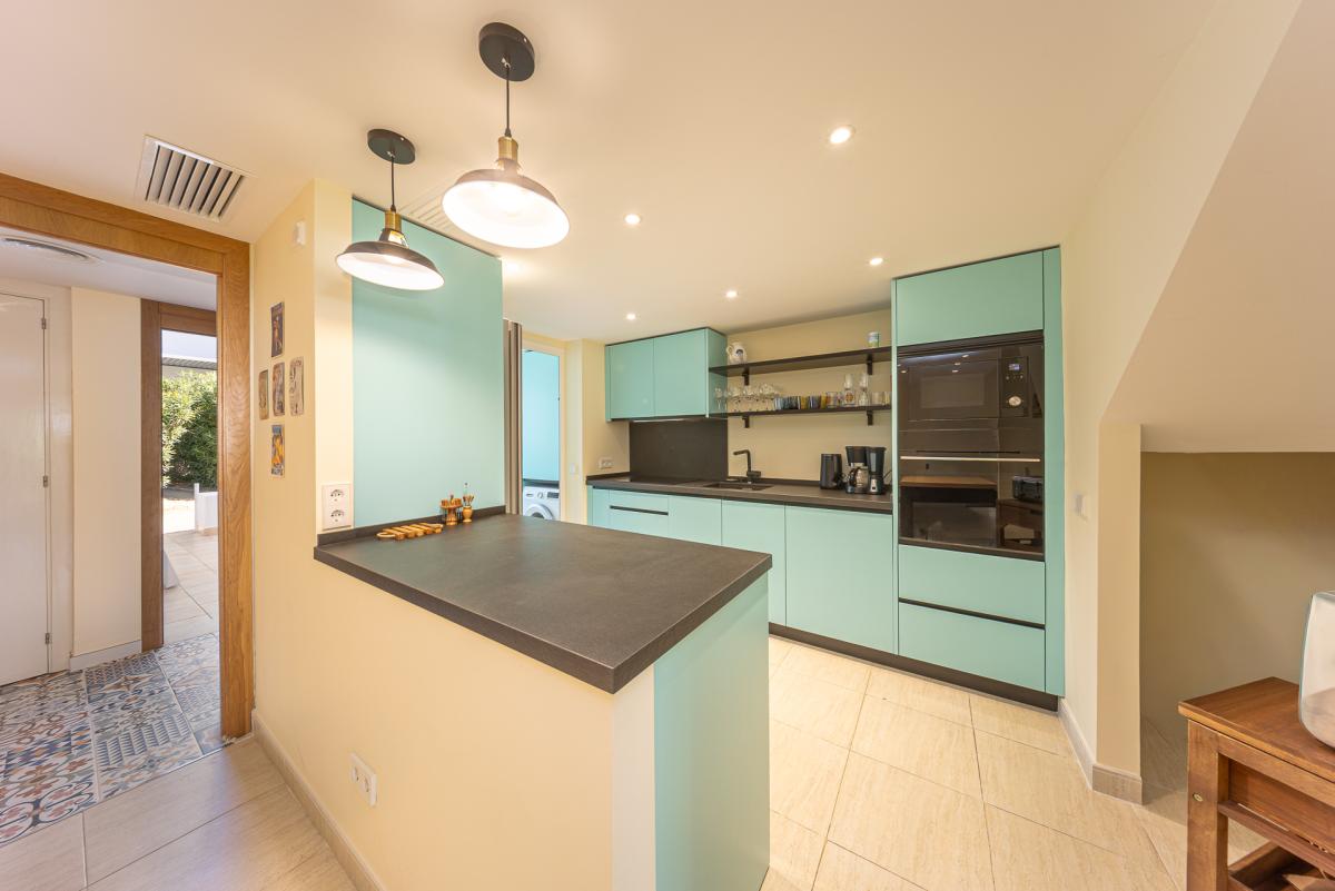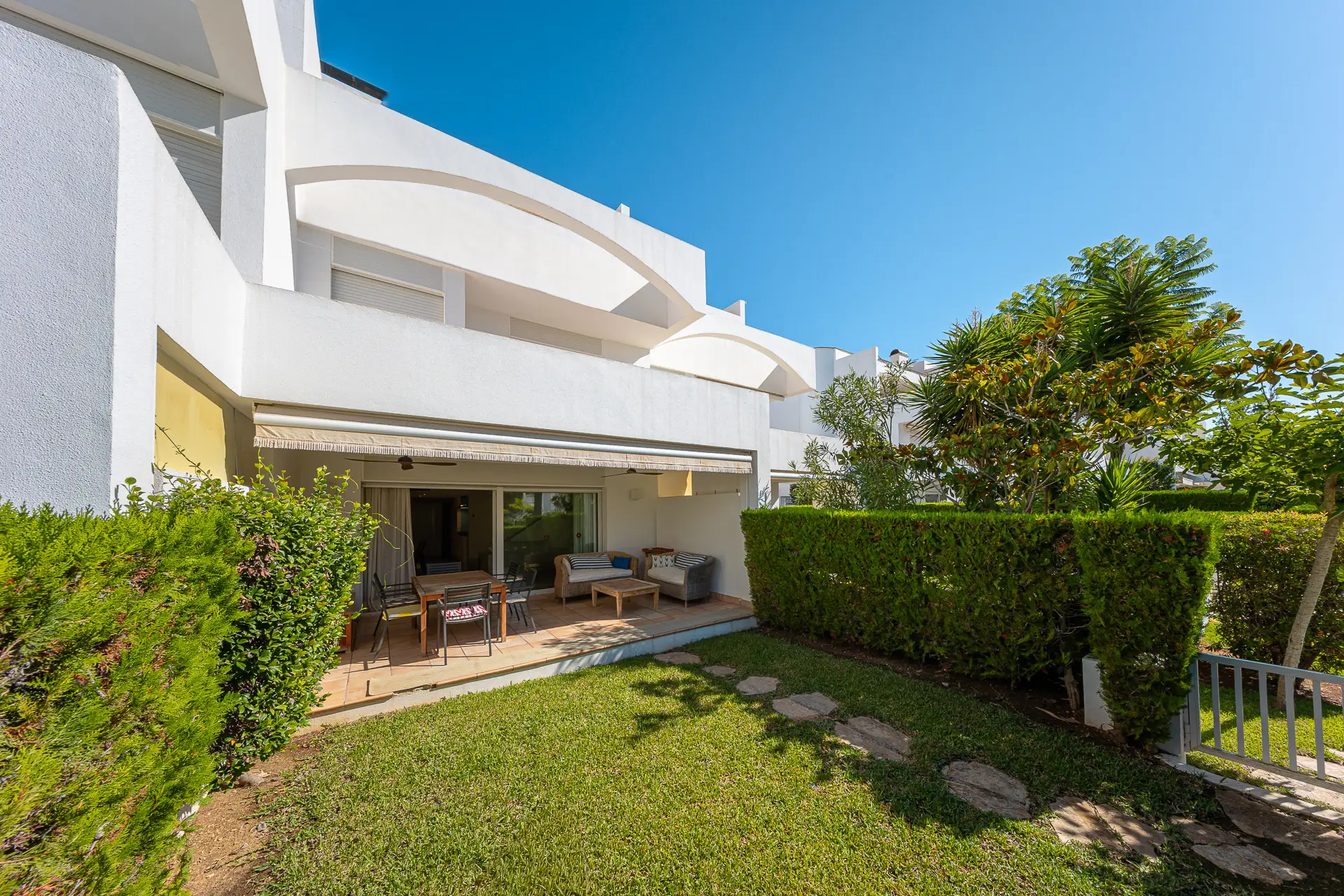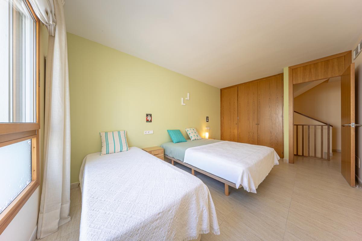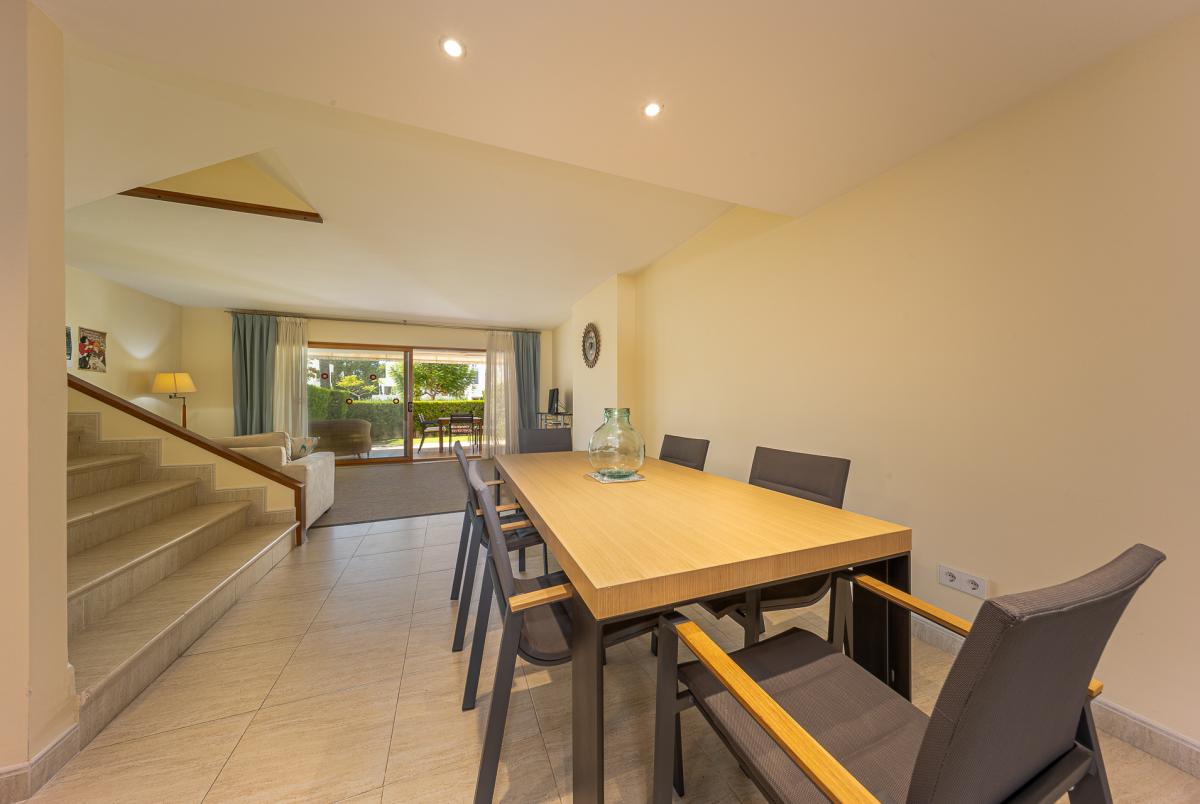 Terraced house located in the peaceful area of Bellresguard, just a short walk from the famous "Pine Walk" in Puerto de Pollença. This spacious property, spanning approximately 205 m², is spread across three floors and features four generously-sized bedrooms, three bathrooms, and a convenient guest WC. It boasts a fully equipped open plan kitchen, a bright and airy living/dining area, and a functional utility room.Outdoor spaces are a standout, with three terraces on the first and second floors, plus a covered terrace with direct access to a private garden—perfect for enjoying the serene surroundings and Mediterranean climate. The community offers extensive landscaped gardens, sunbathing terraces, and a communal pool, all set within beautifully maintained grounds. Each villa is provided with a private garage and an additional covered parking space.Comfort and convenience are guaranteed with air conditioning and heating installed throughout the home, ensuring year-round comfort.