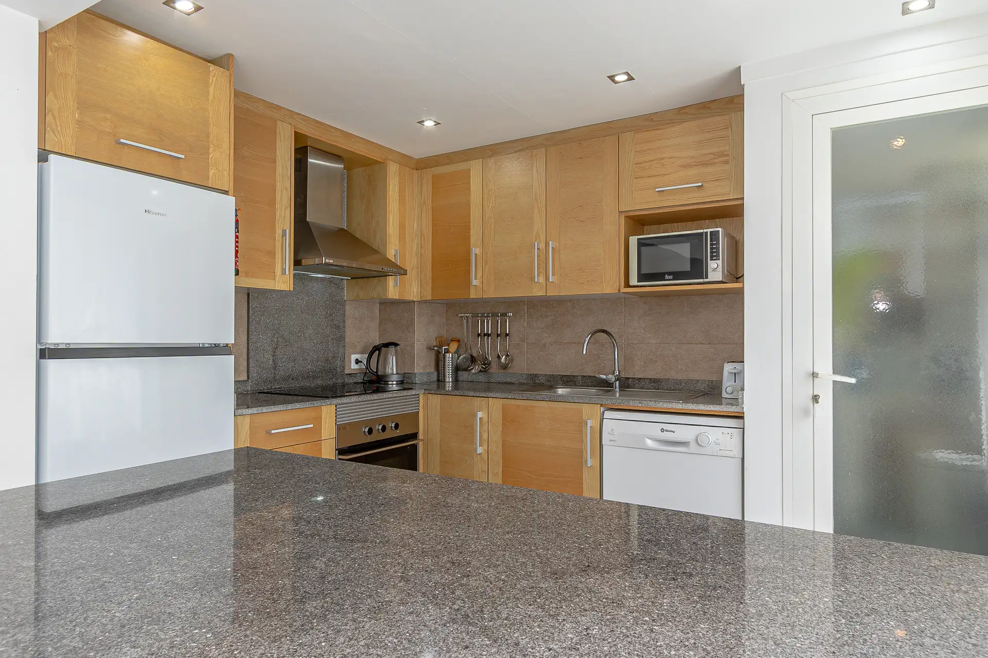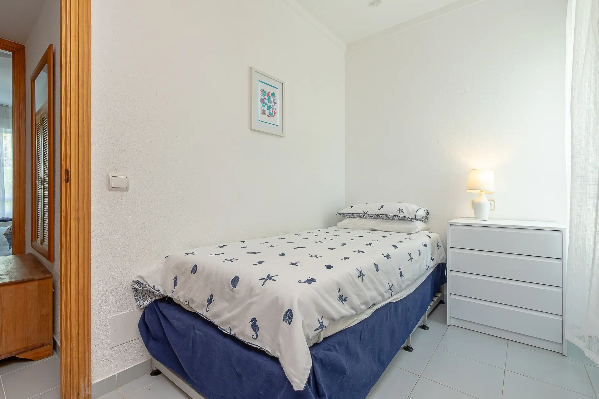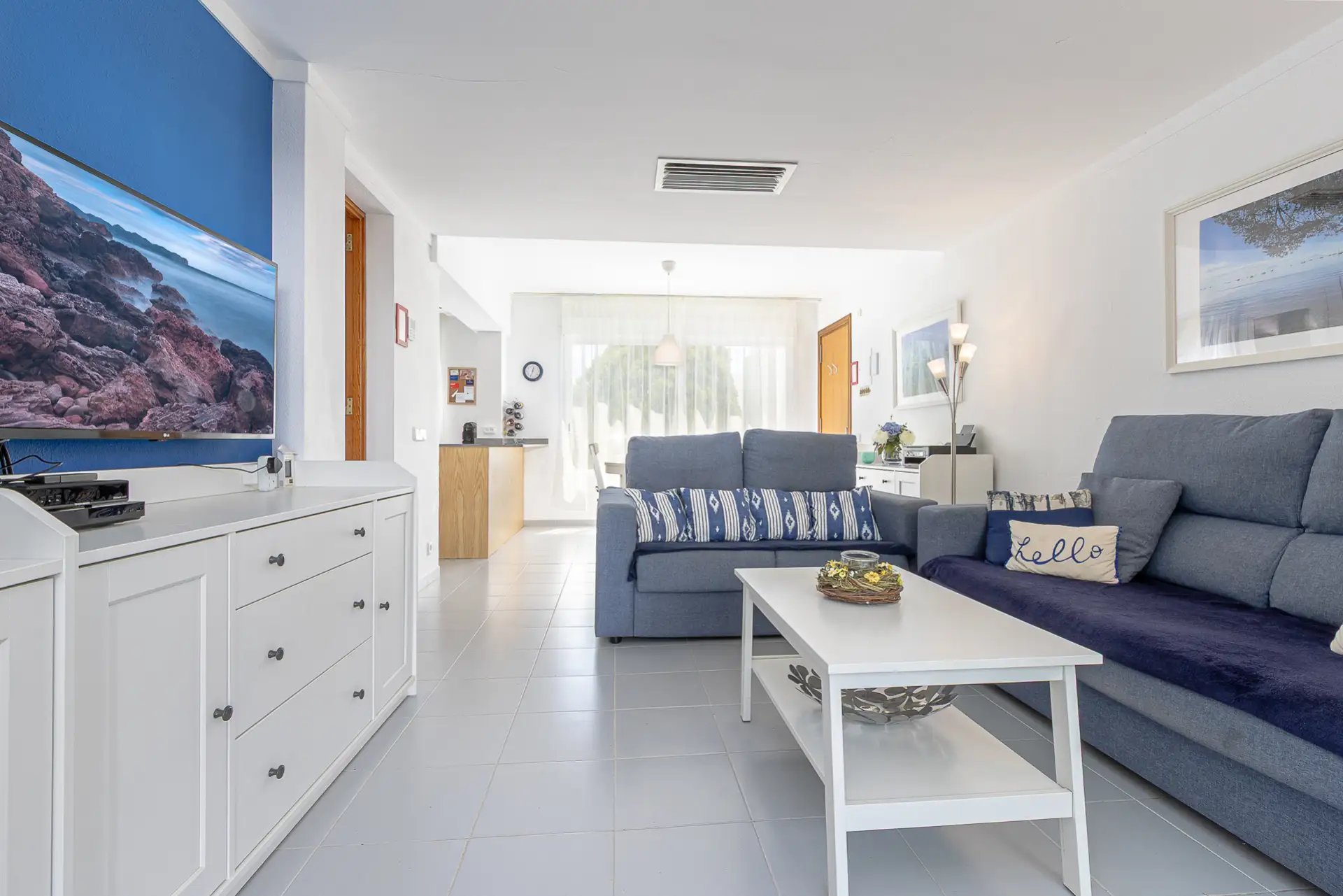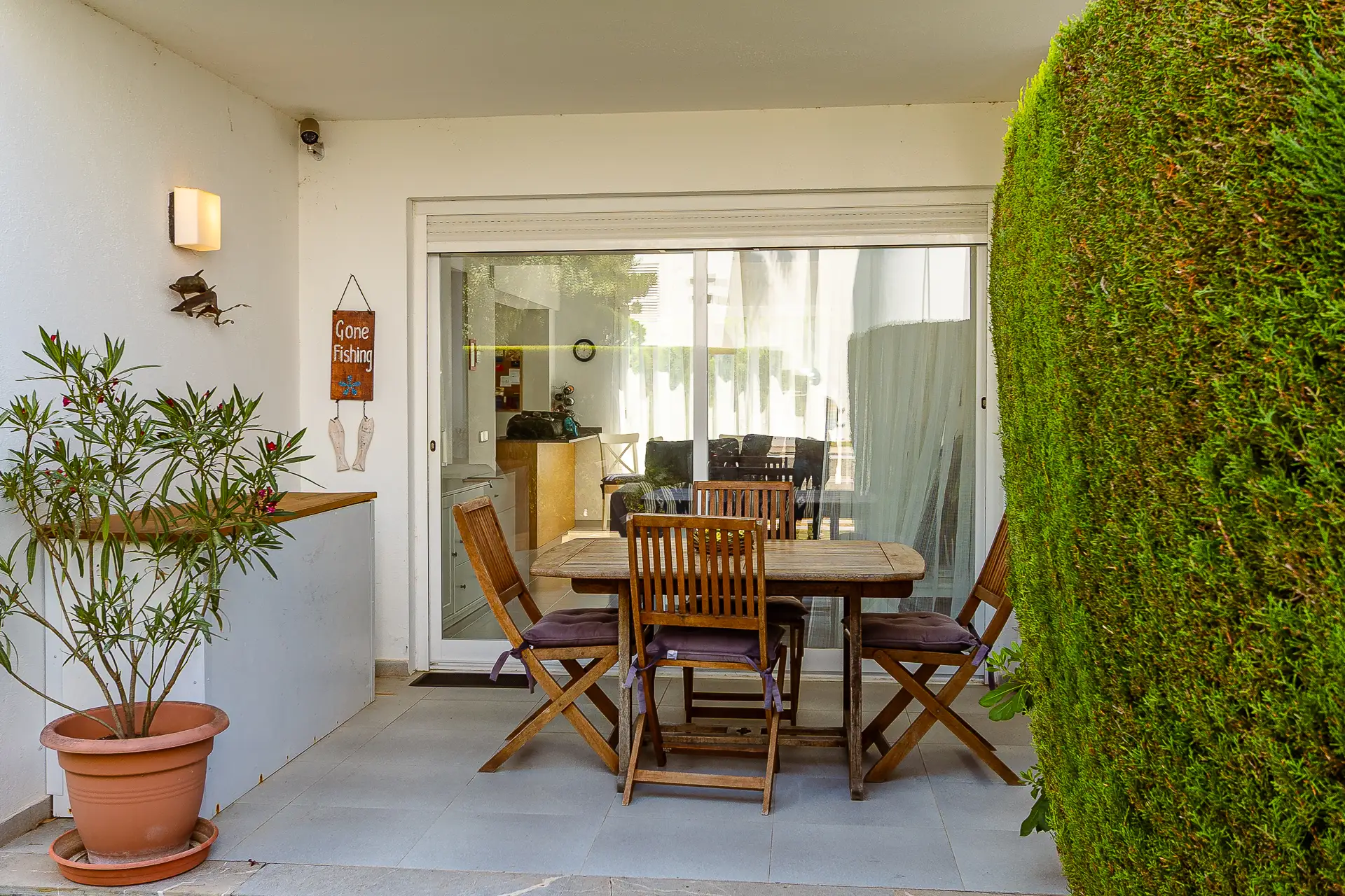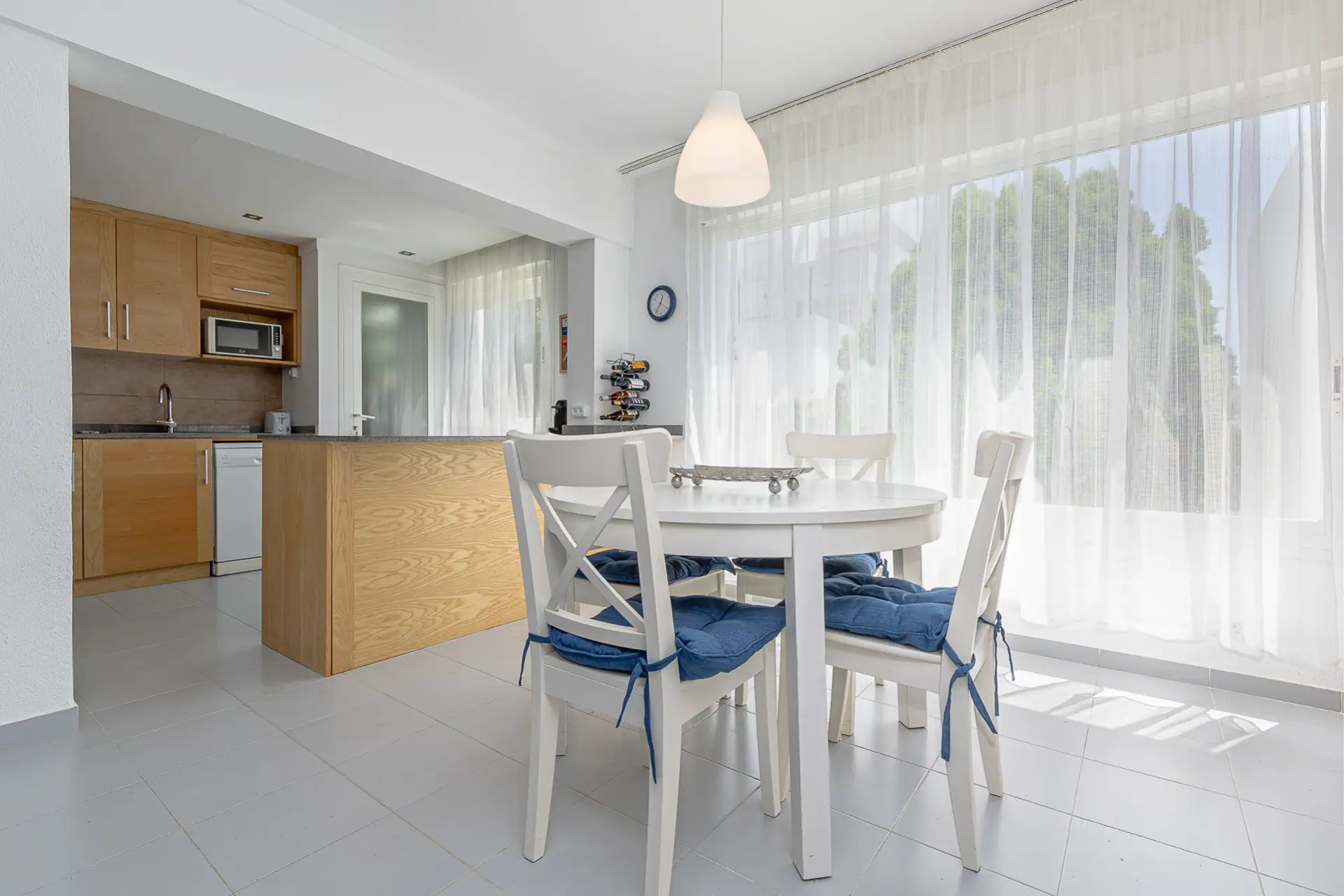 Located in the sought-after residential area of Bellresguard, just steps from the Pine Walk and the beach, this attractive ground floor apartment offers an exceptional combination of comfort, convenience, and Mediterranean charm.The property boasts 80 m² of well-designed living space, featuring, two spacious double bedrooms, one smaller bedroom, ideal for bunk beds or a home office, two bathrooms, a fully equipped open-plan kitchen with a separate utility room, and a bright living-dining area that opens onto a 10 m² private terrace — perfect for enjoying the afternoon sun and al fresco dining. The terrace leads directly to a private garden with access to a beautifully landscaped communal garden and large swimming pool, providing a serene and family-friendly environment. Additional features include air conditioning and heating throughout, underground parking space and private storage room.
